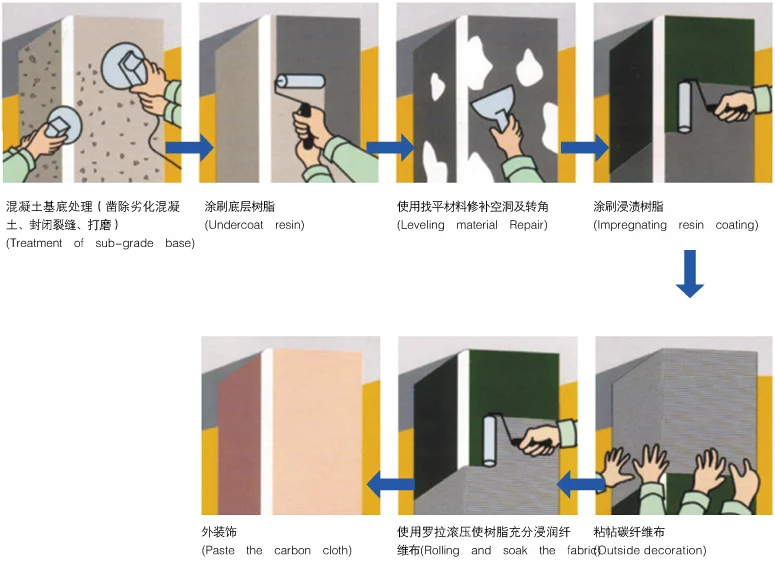 8.FRP wrap operation is completed, however, keep the structure from any impact during the following 24hrs