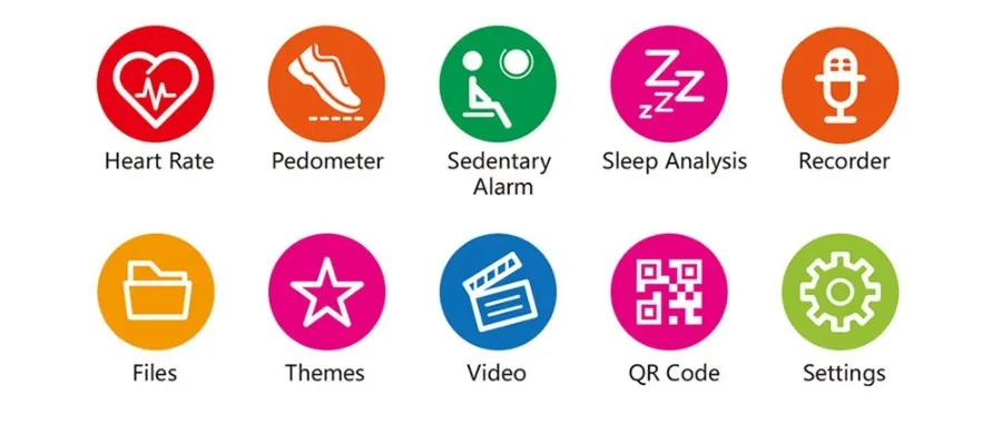 phone book, BT call, sedentary reminder, sleep monitoring, heart rate, message reminder, schedule, time setting