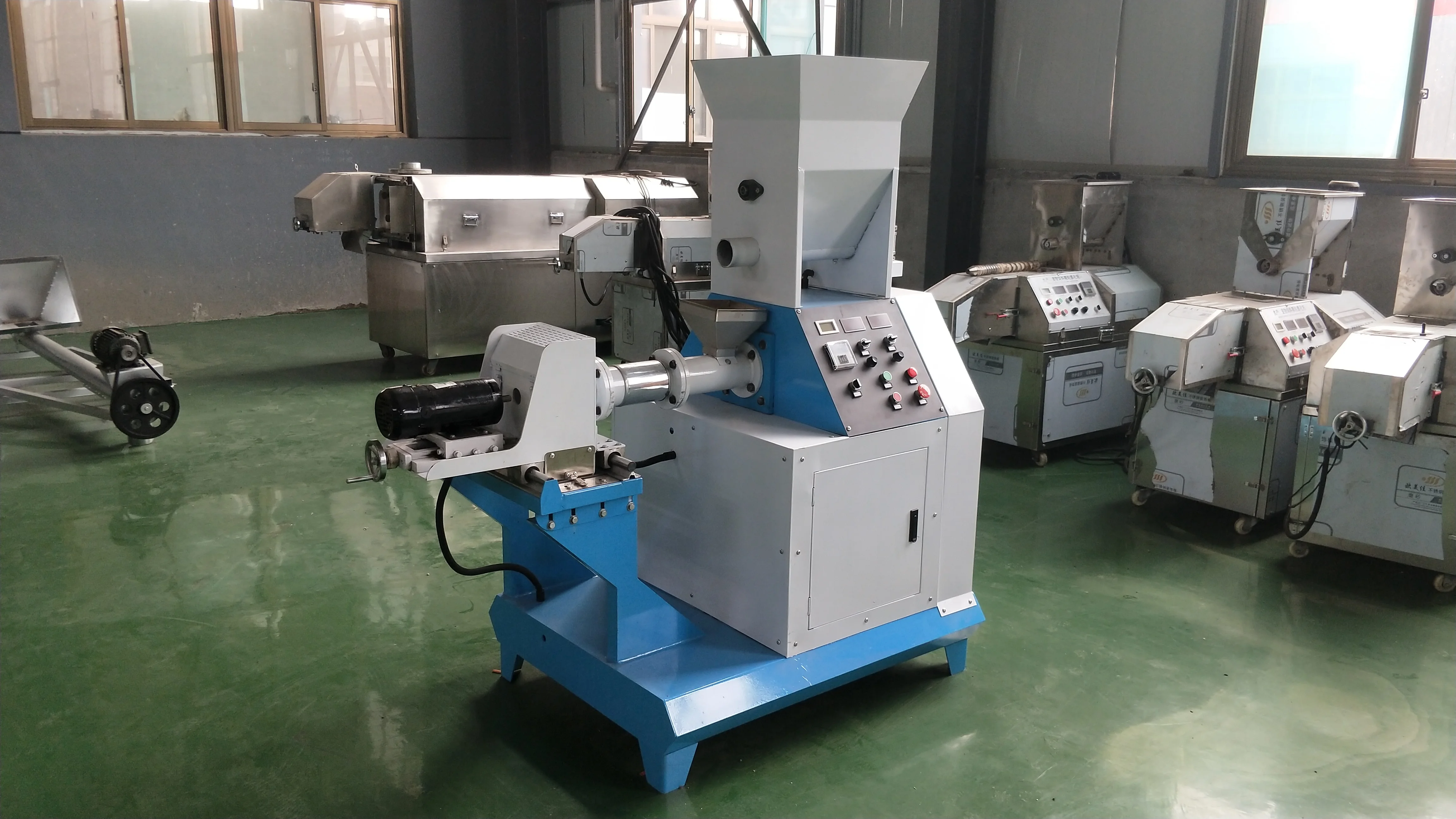 Model | Capacity | Main power | Feed power | Screw dia | Cut power | Pellet size |