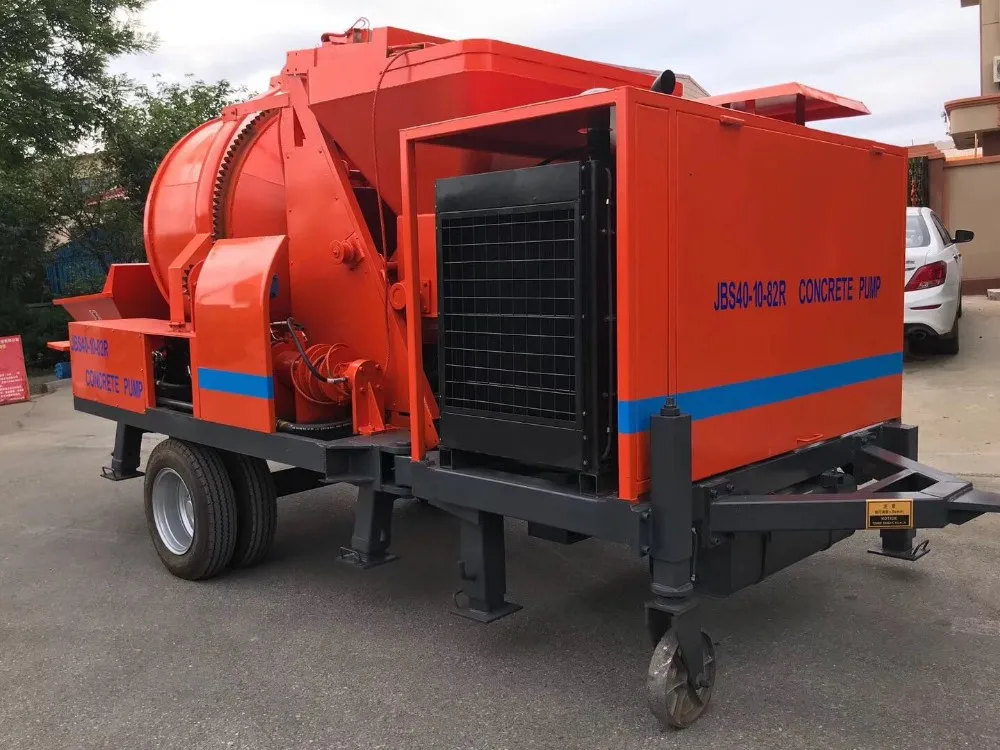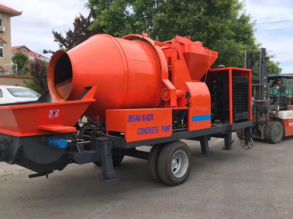 Diesel concrete mixer with pump integrates concrete feeding, mixing and conveying functions seamlessly in one concrete pump machine, the concrete mixer pump can be driven by diesel engine or electric motor as your require. It is widely used for continuously concrete mixing and conveying through high hydraulic pressure along the pipeline in such applications as housing building, bridge or tunnel construction. It is made with high wear and strong corrosion resistant chrome alloy steel to greatly improve the product performance, and is optimized by the electric proportional control buffering, pressure difference sensing and reversing technology to decrease high pressure oil pump reversing time. Our concrete mixer pump is intelligently controlled to achieve the perfect and high efficient concrete mixing and conveying, it features compact structure, stable concrete pumping, energy saving, high efficiency, flexible movement and easy operation, etc.