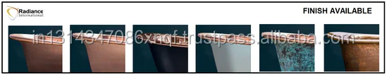RADIANCE INTERNATIONAL was established in 2011 in Moradabad (Brass City ) Uttar Pradesh , India. We specialize in manufacturing and sales of Copper , Bronze Sink, Vessel sink, Basin Copper Kitchen sink, Bar sink , basin , Range Hood, Copper Bathtubs, Copper Chimney Caps, Copper Accessories. All of the Copper products are 100 % handmade, 99.9 % pure copper, Yellow Silicone Bronze, Silver Bronze. Rose gold Bronze . There various styles of the copper products. Also, we can customize designs, size and finish as your designs. Our goal is to provide the high quality products, reasonable prices & best service. we have professional and strict inspectors to guarantee the quality of all copper products. Our company won a good reputation by customers from America, South America, Europe, Southeast Asia, and Middle East countries including importers, wholesalers, distributors, Chain Store, hotel owners, developers, contractors, home builders, installers, architects and interior designers. Warmly welcome customers from all over the countries to visit our factory. Hope establish cooperation and create a bright future together.