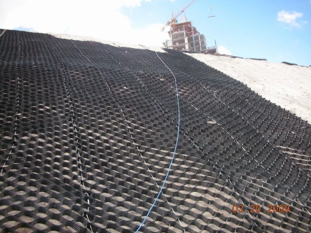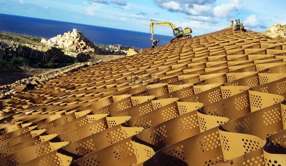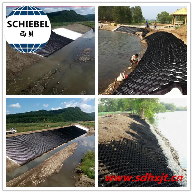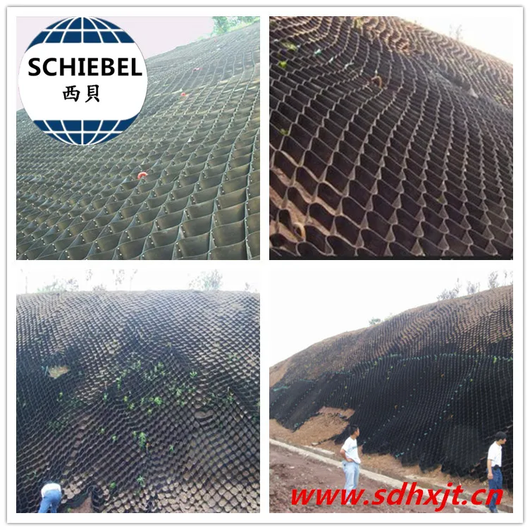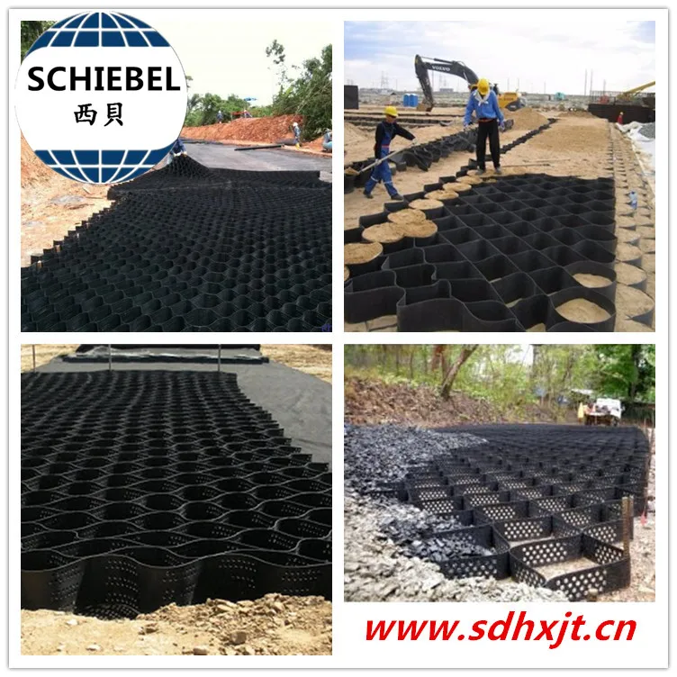 (1). Geocell can be stretched freely and can be folded. It can be stretched into a network during construction, filled with loose materials such as soil, gravel and concrete to form a structure with strong lateral limitation and large rigidity.