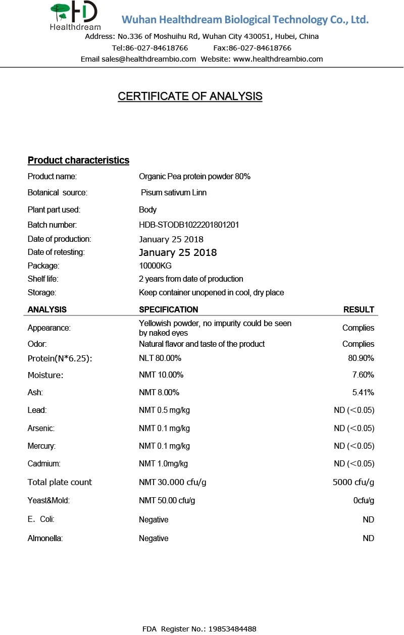 Product name: | Organic Pea Protein Powder |