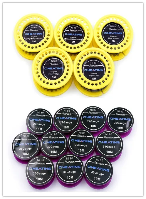 | Sizes | 1.Roundwire:17ga,18g,19g, 20g, 21g,22g,23g,24g, 25g, 26g, 27g, 28g, 29g, 30g, 31g, 32g, 33g, 34g, 36g, 38g,40g etc. 2.Clapton wire:clapton wire,alien,Juggernaut,Fused parallel/twisted core clapton, tiger, quad, flat twisted, mix twisted, twisted wire, hive, tri-twisted, spaced, staggered fused clapton wire, ni80 triple/quad core clapton wire, etc. 3.Different type coils:clapton,alien,fused,triple/quad core,tiger,flat twisted,mix twisted,premade coil,hive,quad,8 in 1 ,etc. 4.Each material has the different sizes to choose. |