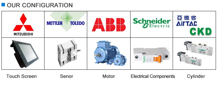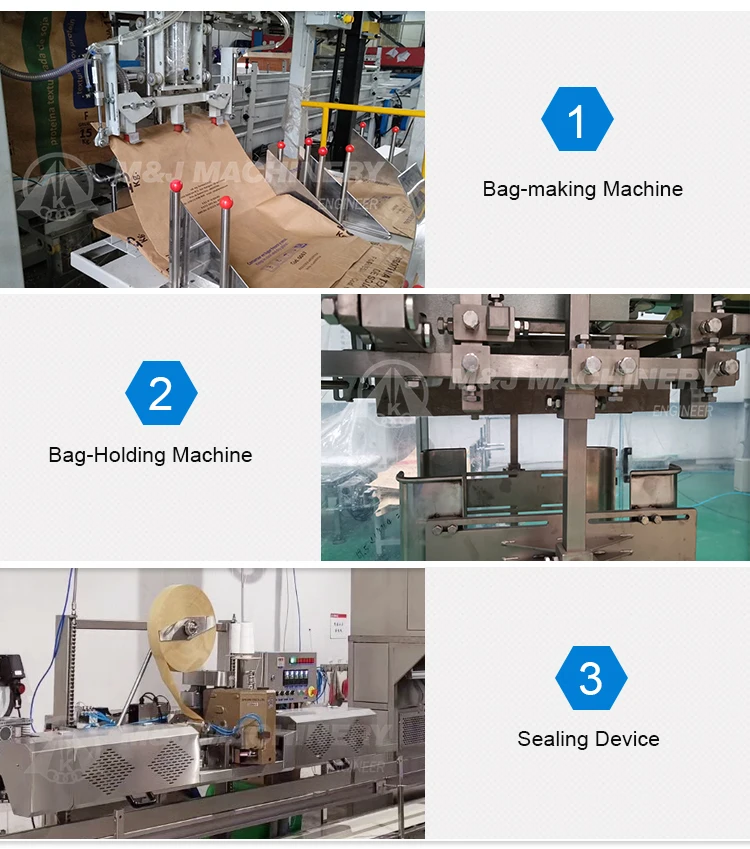 Components: 1.Automatic quantitative weighing device 2.Automatic bag-supplier 3.Automatic bag port reshape clipper 4.Automatic belt conveyor 5.Automatic sewing/sealing/fold sewing/glum sealing machine 6.Automatic bag-backwards section 7.Electrical control cabinet 8.Options