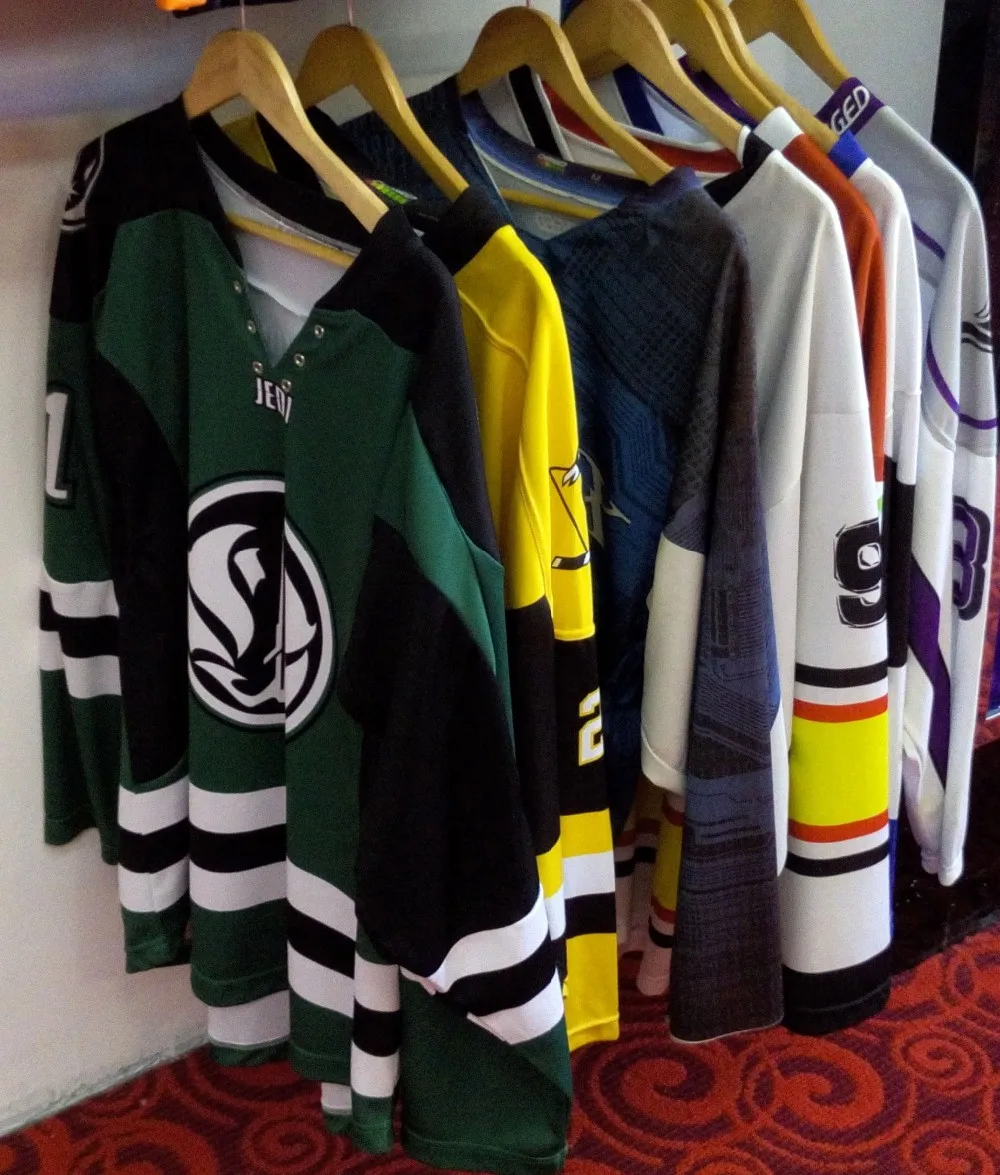 * Have many types hockey jerseys, you can pick up.V neck, Round Neck, T neck, Hood type.
