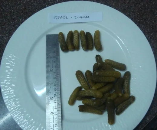 Freshly preserved gherkins in Acetic Acid media, (Acetic Acid, Water,salt and calcium chloride, KMS)