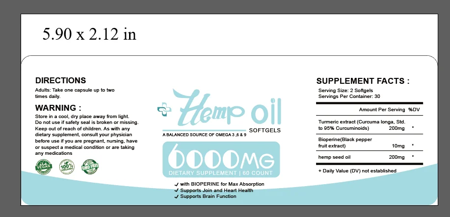 Active Ingredients: Hemp Seed Oil, Black Pepper Extract, Turmeric Extract