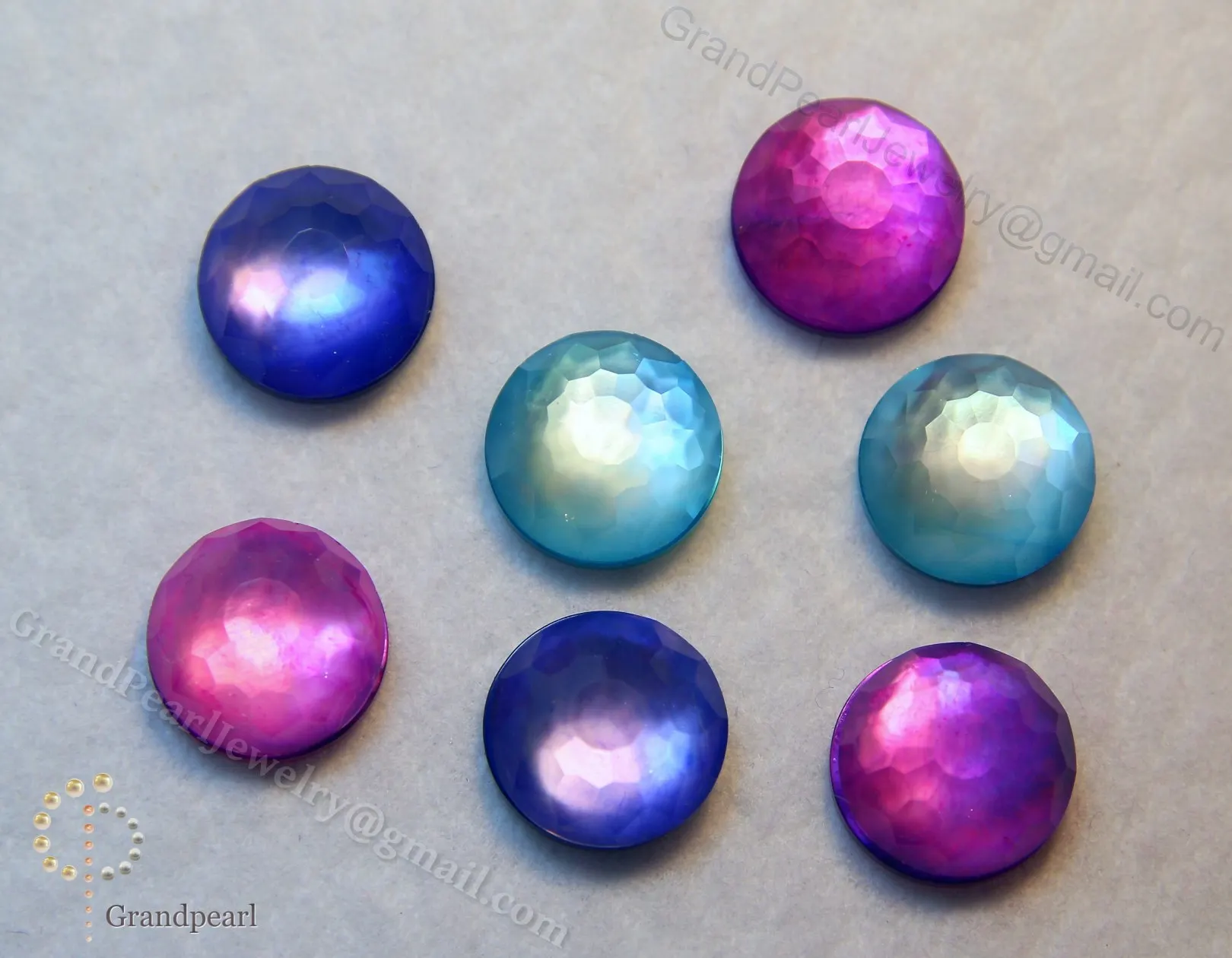 Synthetic, flat-back or pointy-back, smooth or faceted, in special shape or cut, etc.