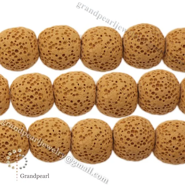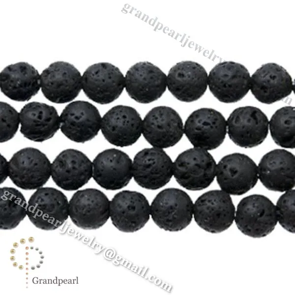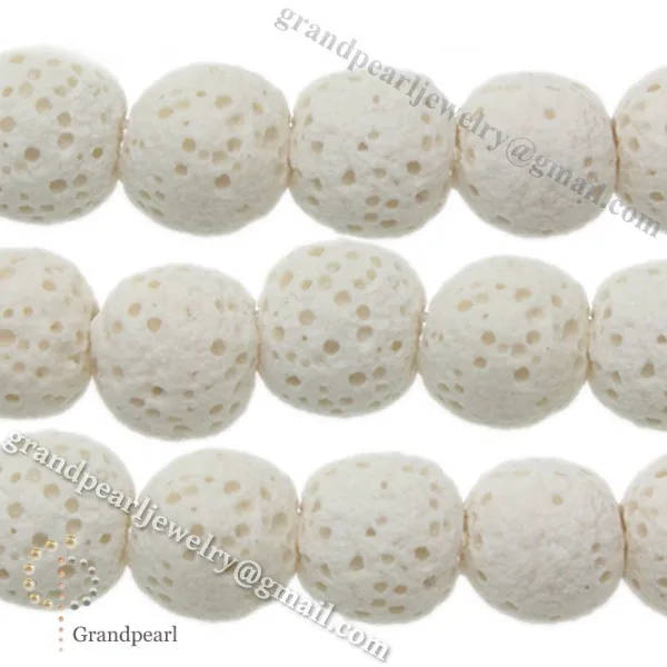 14mm_ white smooth round beads Lava Necklace