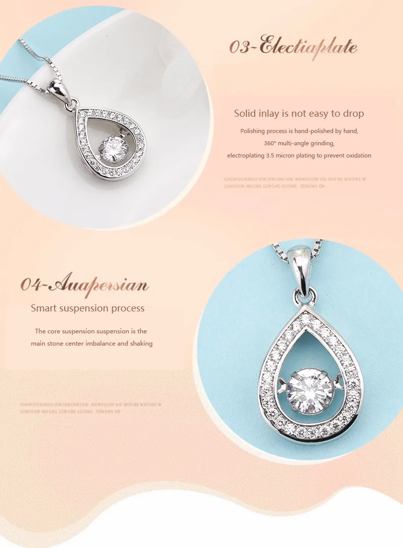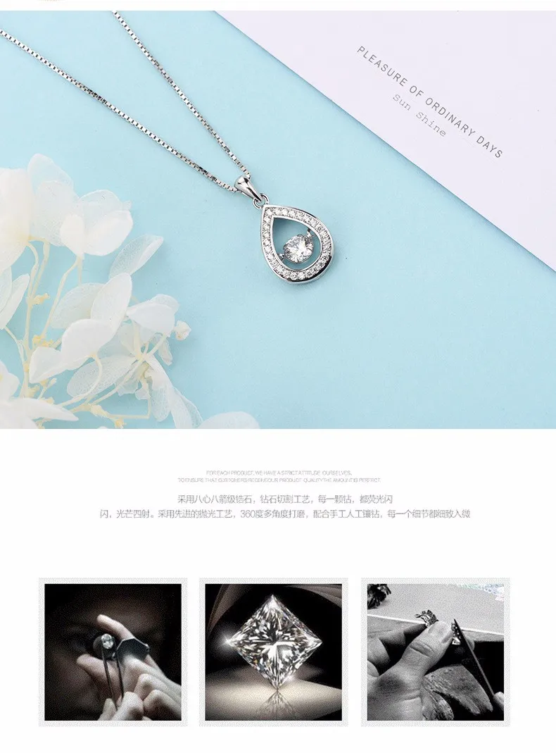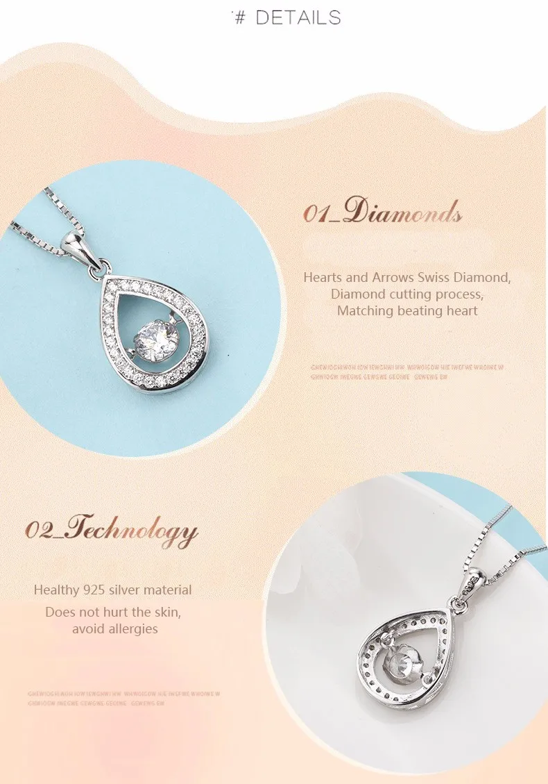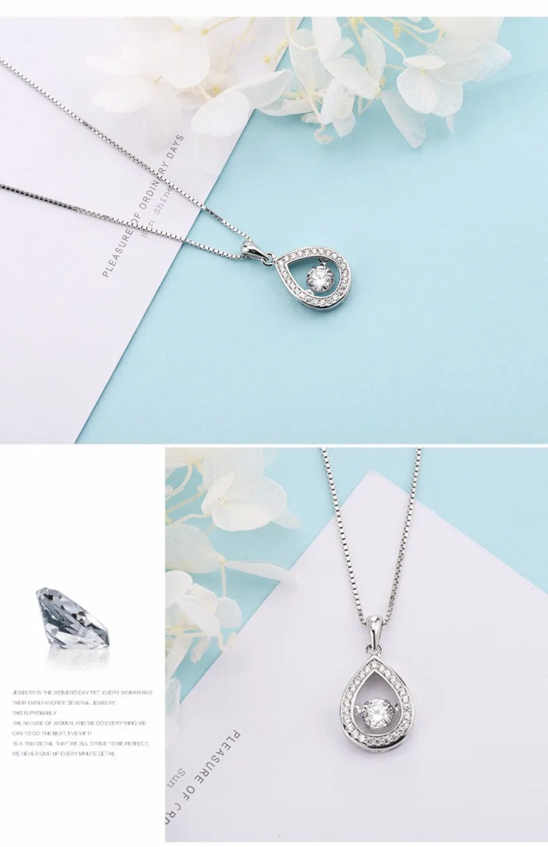 Product Name: | 925 Sterling Silver beating heart Necklaces Tear Drop Dancing 4A Zircon Smart pendant for women |