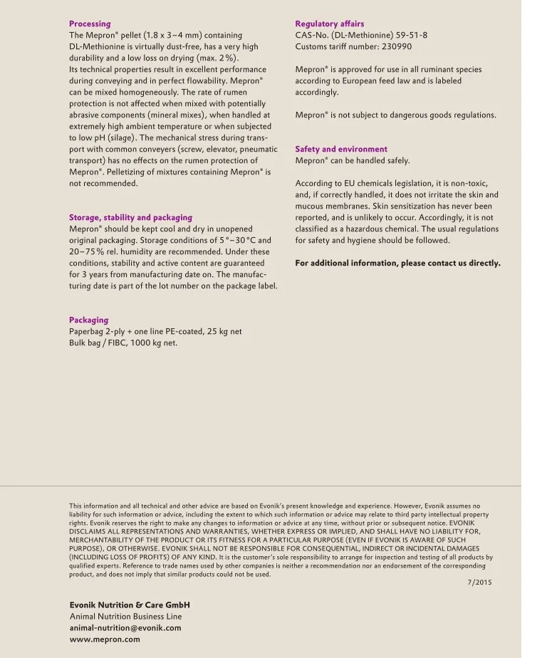 Mepron rumen protected DL Methionine Feed Grade