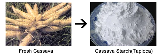 The production process of cassava starch(tapioca) comprises the steps such as delivery and unloading cassava, washing, peeling, crushing, slurry and residues separation, desanding & desilting, starch concentrating and refining, de-watering, starch drying and packaging.
