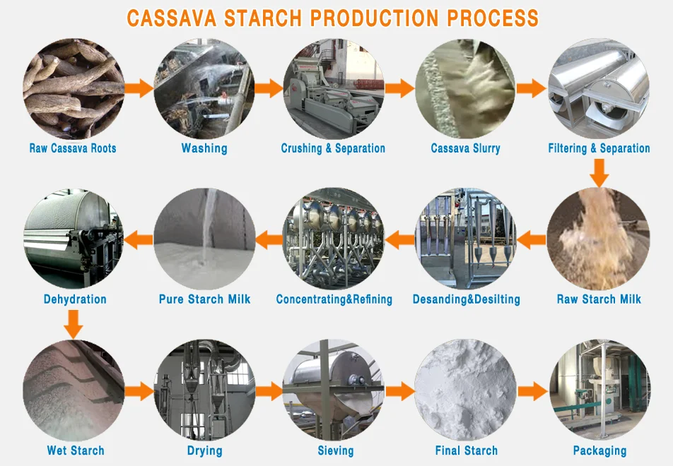 Note: Goodway updates the cassava starch processing machine and cassava starch processing production line technology and machinery based on latest experience.