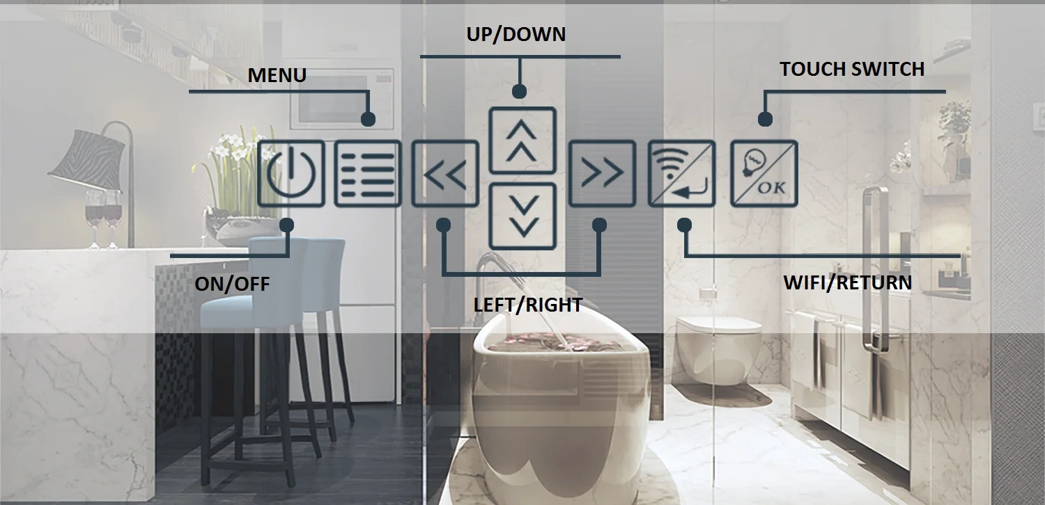 Function for choosing | Touch Switch/ Three colors lighting/ Bluetooth/ TV/ Clock/ Night Light/ Magnifier/ Demister/ IR Sensor Switch |