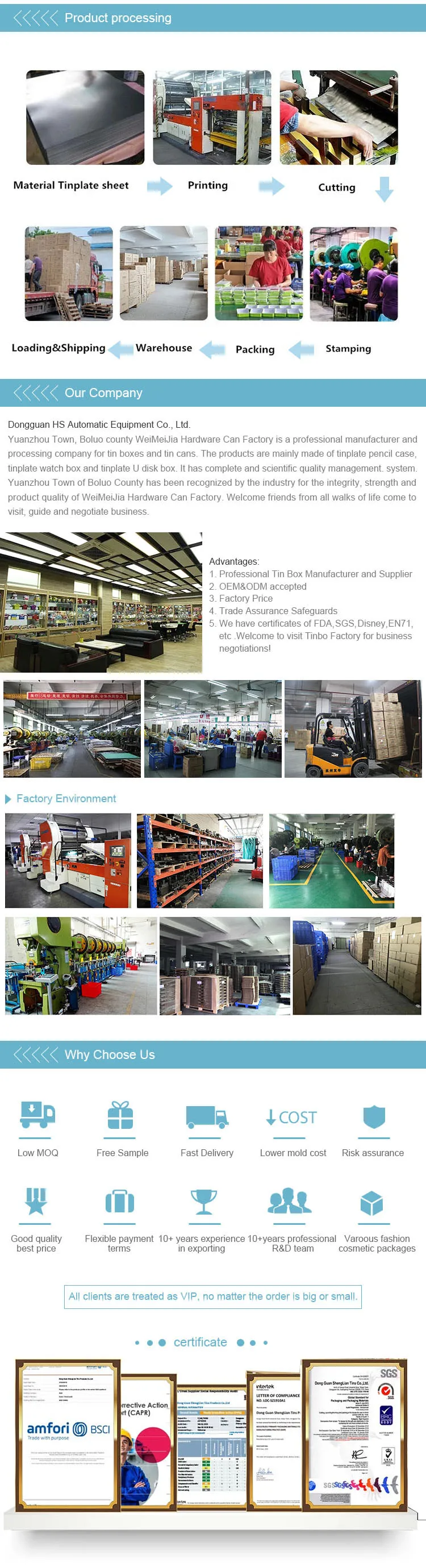 Printing | *Offset printing (CMYK or PMS); *Glossy or matt finish outside; *Natural tin silver or gold varnish inside ; *Metallic effect available |