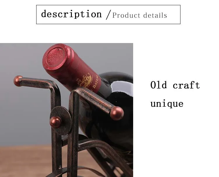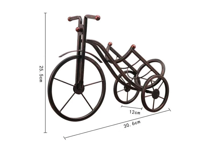 Our bicycle metal wine rack is made of high quality solid plated wrought iron , Antique Bronze Finish, handmade craftsmanship, tough and durable, long time service life .which is versatile and attractive