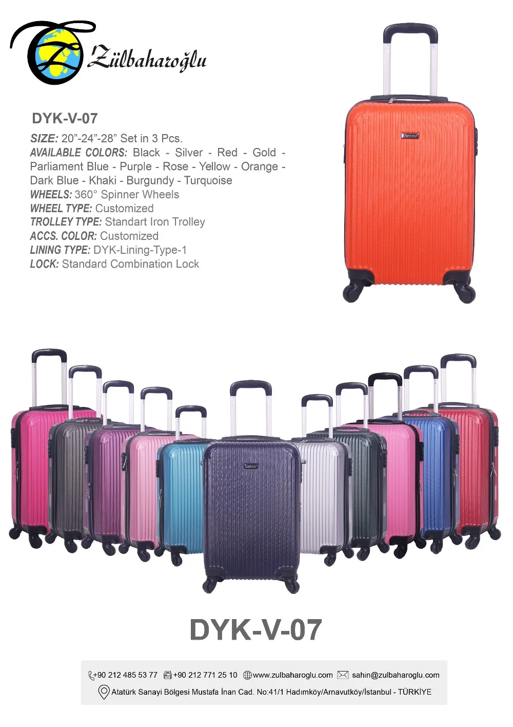 Zulbaharoglu Tekstil A.S. produce luggage & bag's spare parts, working around 120 people, %90 of the parts are producing in our 15000 square meter factory, serving to local and international customer all around the world. Our company located in the center of Europe and Asia the city of Istanbul / Turkey. Most of European customers and The USA customers do not have to pay additional custom taxes because we provide the certificate of Made In Turkey. Our company is a big family company, you will always keep contact with a member of it. We are one of the biggest luggage and bag's spare parts manufacturer in Turkey. We cooperate with our local customers to provide luggages so we have many options to serve you. You may also visit our alibaba page ( https://tr901280639.trustpass.alibaba.com/?spm=a2700.details.cordpanyb.1.49bbb589xdETvx ) to check which items are producing by our company.