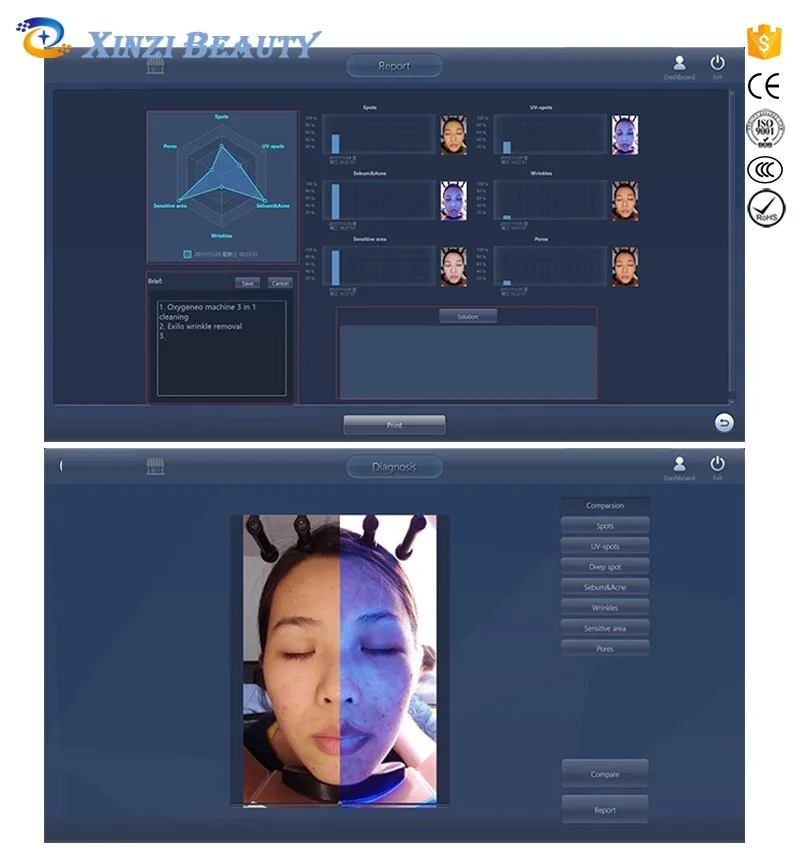 9.CRM with professional UV / RGB analysis for pore, wrinkle, acne....