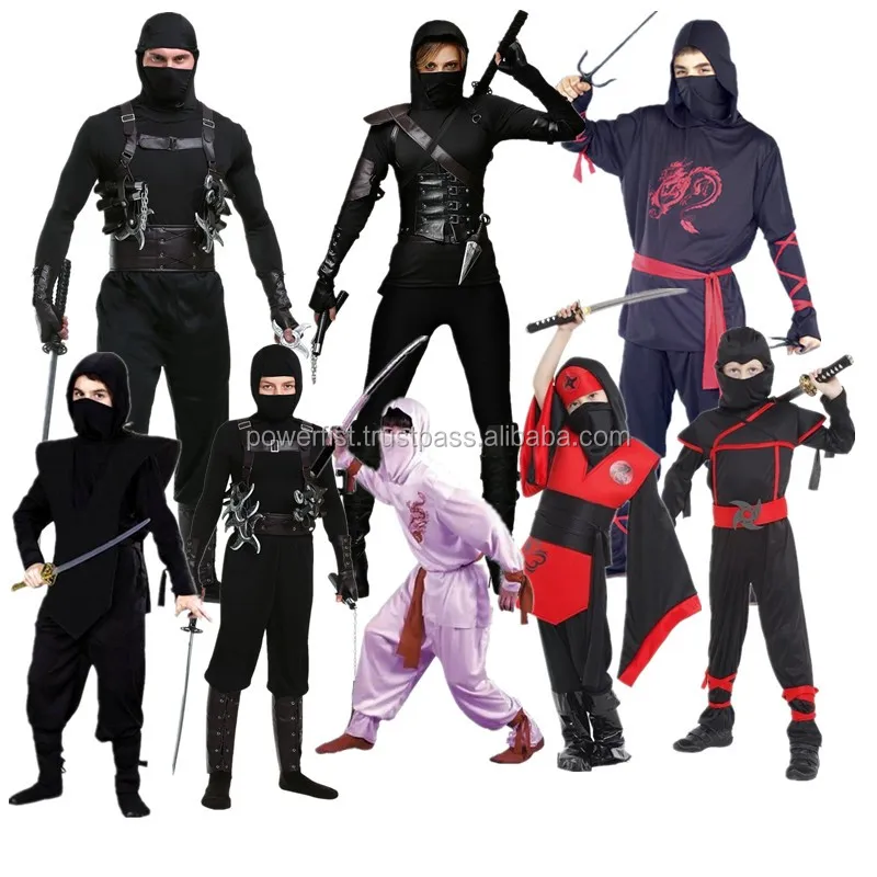 NINJA SUITS: Customary wrap over jacket incorporating secret pocket. Trousers have calf ties and traditional ties to the waist. Includes inner and outer hood, gauntlets. Excellent for the traditional Ninjitsupractitioner. Made from 100% cotton.