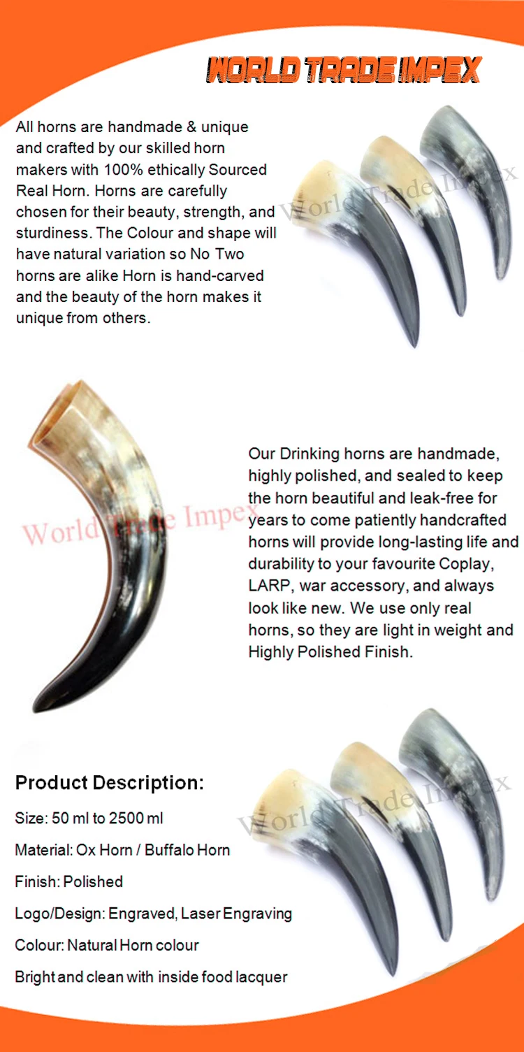 We World Trade Impex are the leading manufacturer and exporter of horn handicraft products such as Horn button blanks, Horn Kitchenware Item, Drinking Horn, Horn Plates for the optical frame, Horn Jewellery, Horn Gift Item, Horn Inlay, Dog Food, and many more. For more information, please feel free to contact us, we are always available to serve our best quality product at every time, all of our clients are fully satisfied with us.