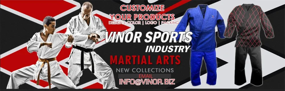VINOR SPORTS is the manufacturer and exporter of Martial Arts uniforms (Jiu-Jitsu, Judo, Taekwondo, Kangfu, Hapkido, Karate), MMA Shorts, Thai Shorts, Rash Guards,T-Shirts,Grappling Spats ,Compression Tights ,Compression Shorts, Fighting underwear ( Sublimated ,Printed and Plain), Boxing gloves, Boxing Mitts, Kick Shields, MMA Gloves ,Champion Belts, Jiu-jitsu Belts and other sports wears and Equipment's.