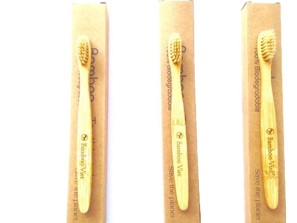 - The environmental friendly bamboo toothbrush is one of the good solutions to protect our environment. The handle of this toothbrush is made of bamboo and the bristles can be made from nylon 6-10, no BPA, PVC. Also the packaging is completely biodegradable. Besides, bamboo toothbrushes are strongly recommended by dentists. They are good for oral health. We have Adult version and Child version. We can engrave your logo on the bamboo handle and print your logo on the package. About the color for bristles, white, black, yellow.