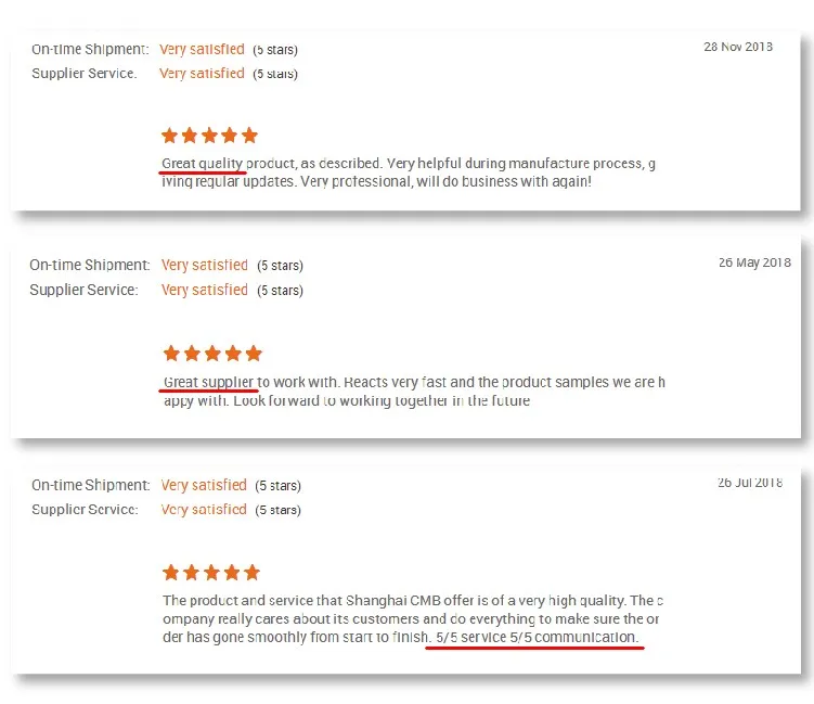 We have strong in line quality management system and each order will be inspected before delivery. Also welcome to use Alibaba trade assurance service to guarantee your purchase.