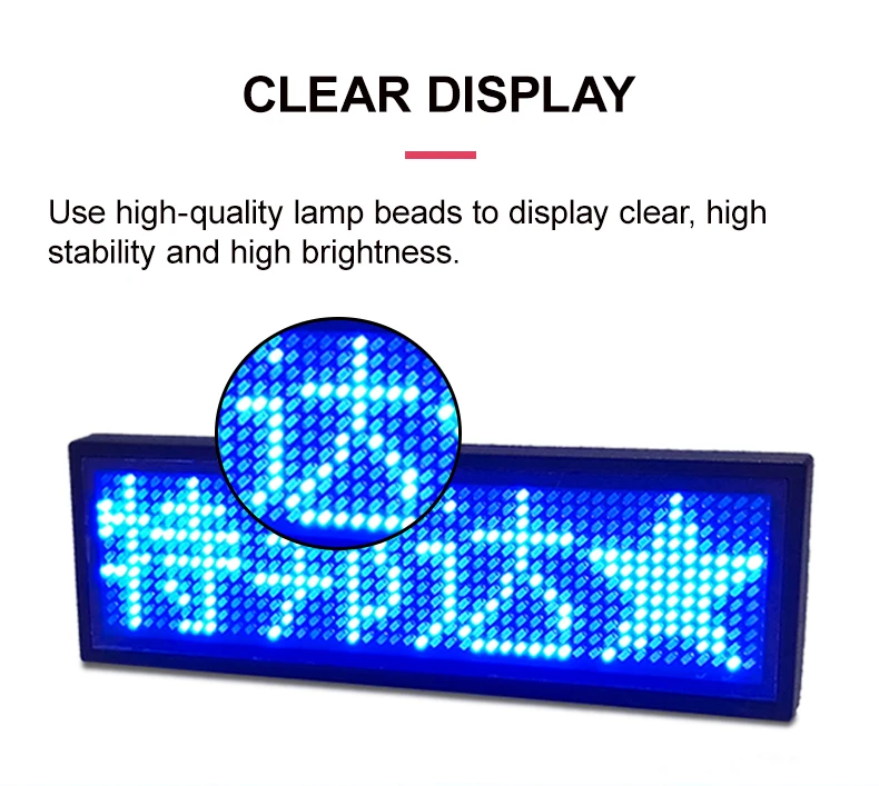 Produc Name | LED Badge | Function Key | 1. Turn On/Off badge- Short press power button 2. Switch message--Short press Message button 3. Adjust Brightess-- Long press Message button | ||