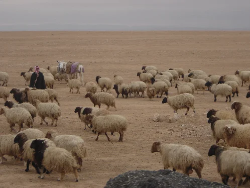 The Awassi is a local sheep breed in South-West Asia originated in the Syro-Arabian desert. Other local names can also be Ivesi, Baladi, Deiri, Syrian, Ausi, Ducktales, Nuami or Gezirieh. It is a fat-tailed type and is multi coloured: white with brown head and legs. The ears are long and drooping