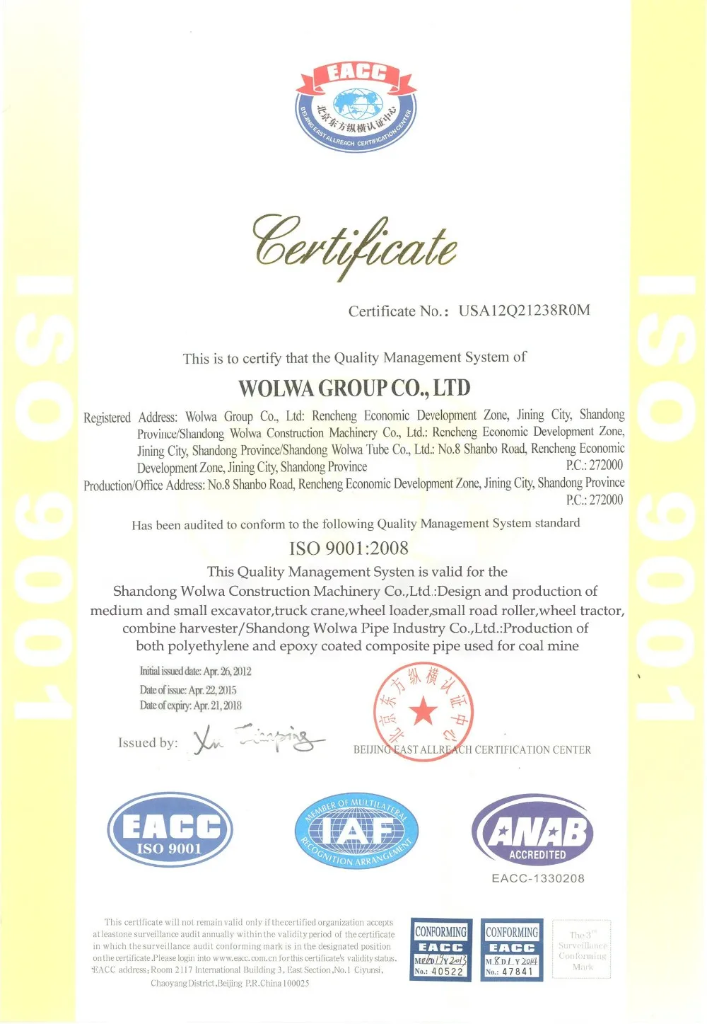Our company has passed the ISO9001:2008 authentication, and got European Union CEcertificate.Our products are