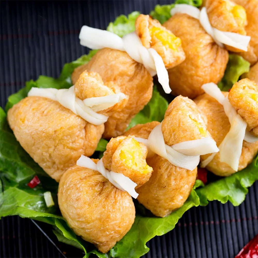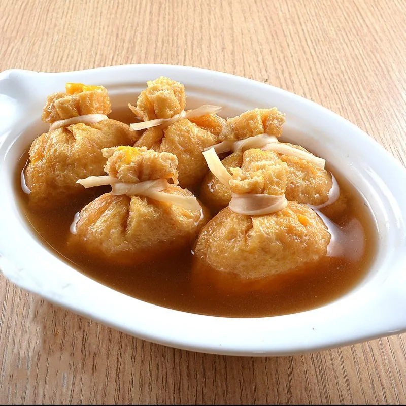 Seasoned fried tofu bean pouch filled with highest quality of Surimi, DHA rich Flying Fish Roe to bring an irresistible taste of seafood freshness after a bite.