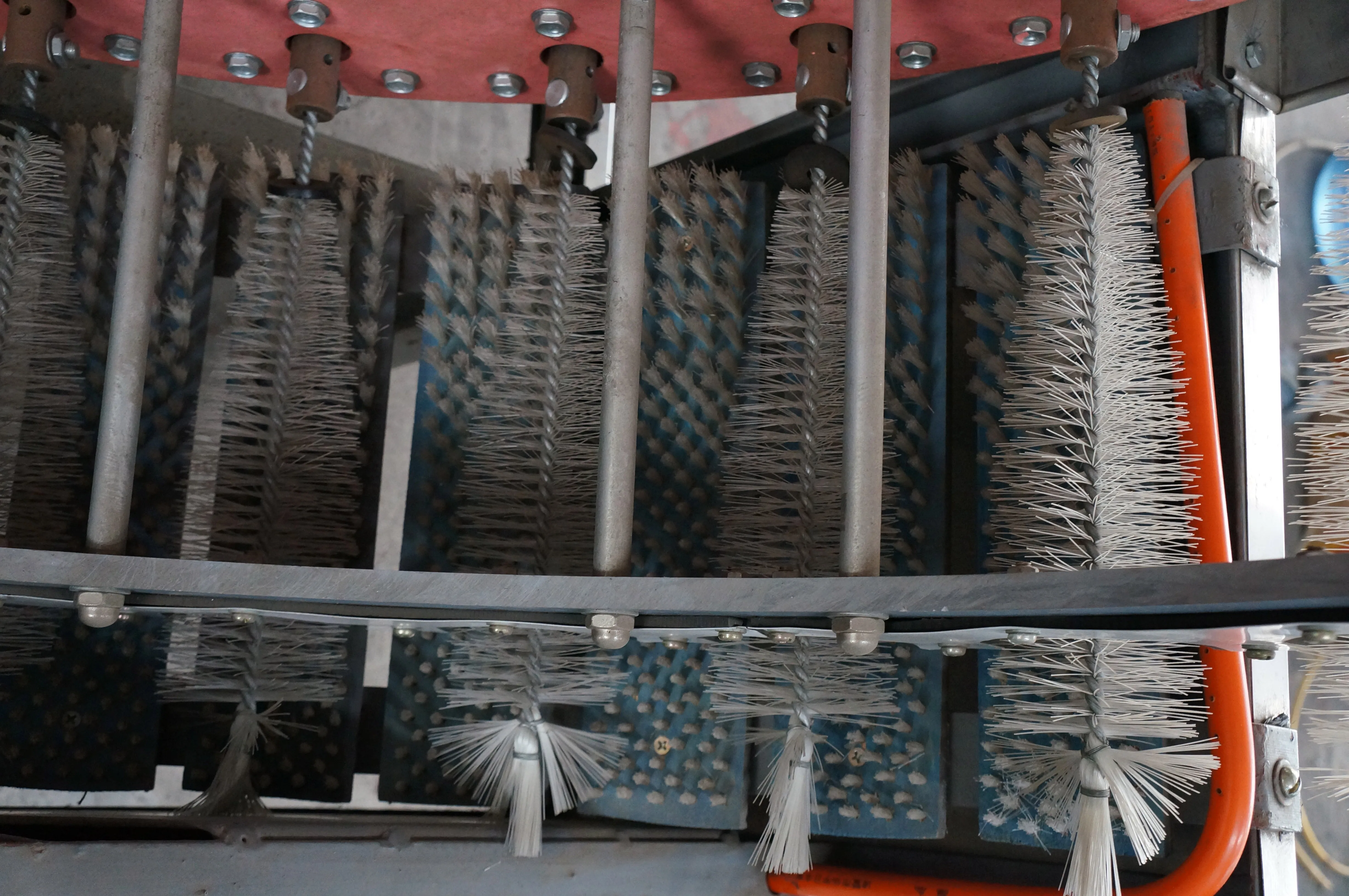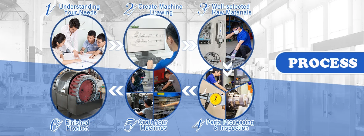 First place the bottles into water for soak, after a while, get through the water pipe to water source and electric power, workers insert bottles into brush positions, open the switch, bottles will be turned round with the dia plate; The brushes rotates inside bottle will make bottle inside clean; The manual gets off the bottles.