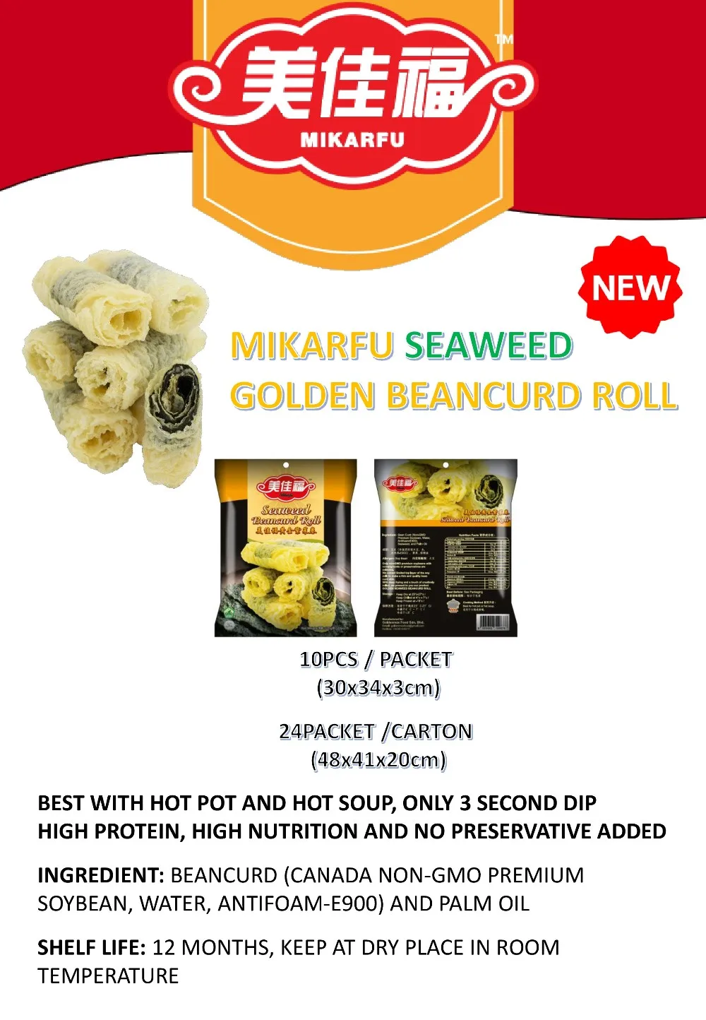 Malaysia Favourite Mikarfu Golden Dry Bean Curd Sheet Rolls Suitable for Steamboat Hotpot Halal 150G US $1.40-$1.68