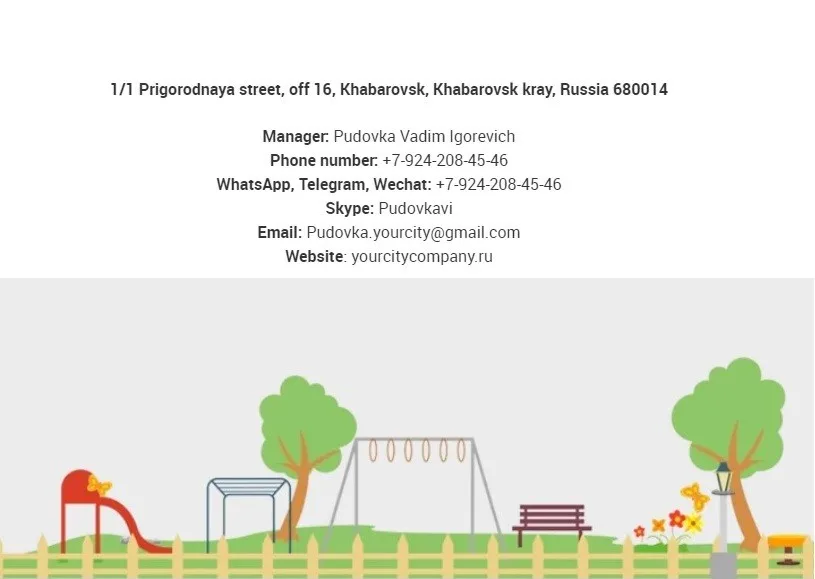 Our company produces small architectural forms (children's and sports grounds (for fulfilling the TRP standards) also urns, benches in Khabarovsk from 2013. Over 5 years, more than 4726 units of various MAFs were installed and 276 objects were installed "turn-key" throughout the region.