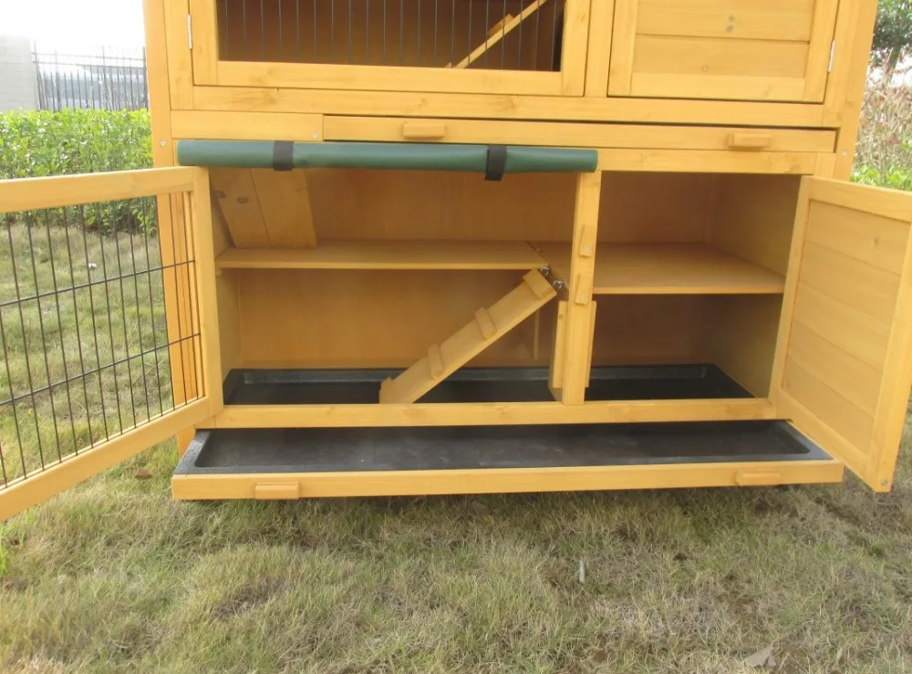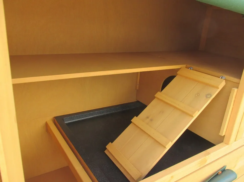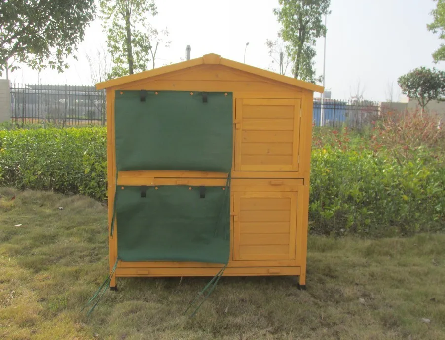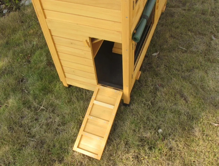 Feature: | * Winproof fabric cover * Two pull-out tray for easy cleaning * Waterproof asphalt roof * Little ramps inside are very usaful and funny * Side door can be opened as a ramp |