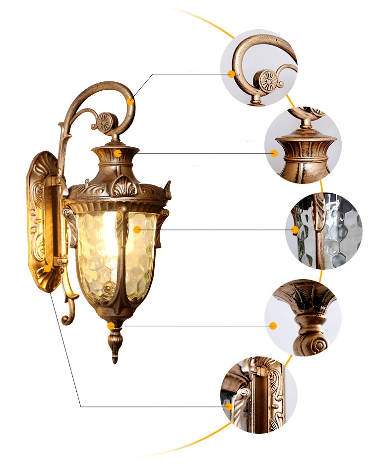 aluminum shell Waterproof Outdoor glass european antique classic vintage style Led Main Gate garden wall Light lamp
