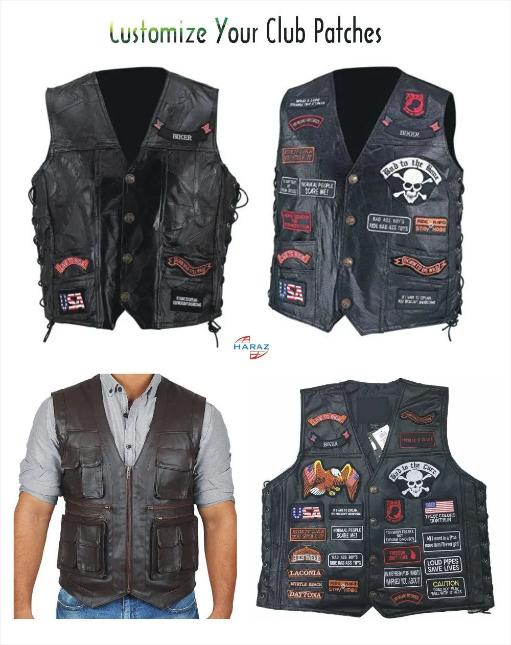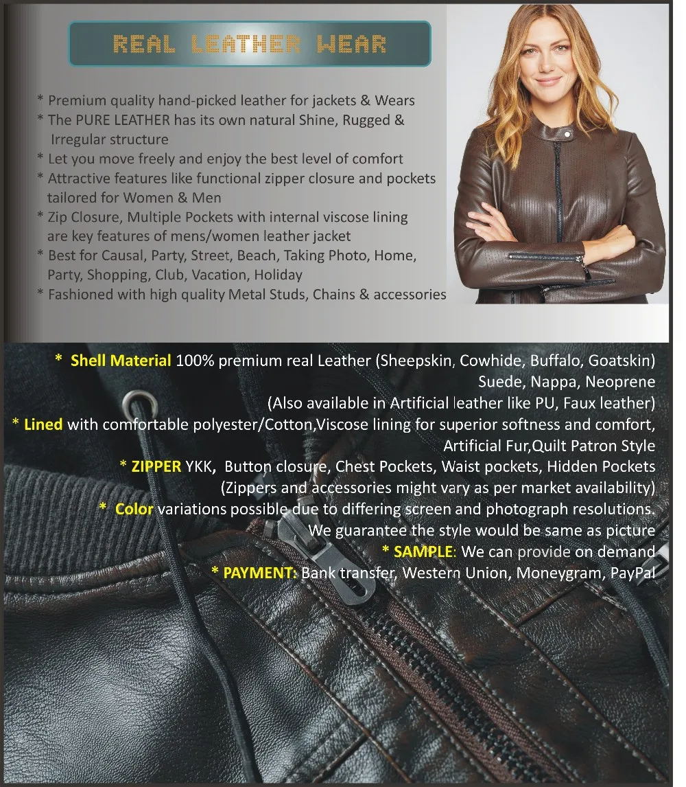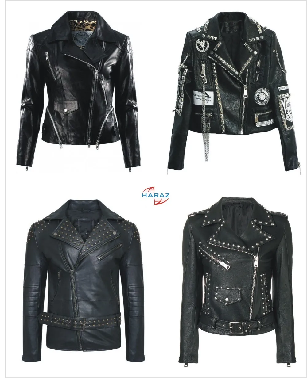 High quality pure leather jackets pants skirts customisation with studs chains & your own logo