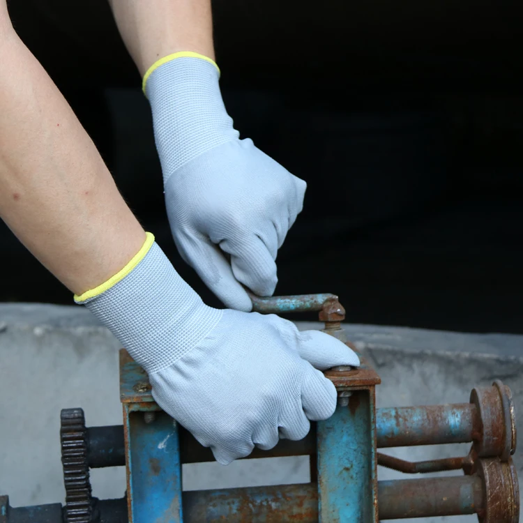 Working Gloves Xingyu 13G Grey Nylon Shell PU Coated Work Safety Gloves Cotton Hand Gloves
