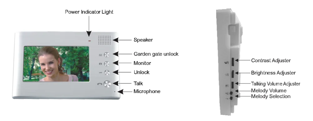 6. Brightness, Contrast, talking volume adjustable from the right side of panel.