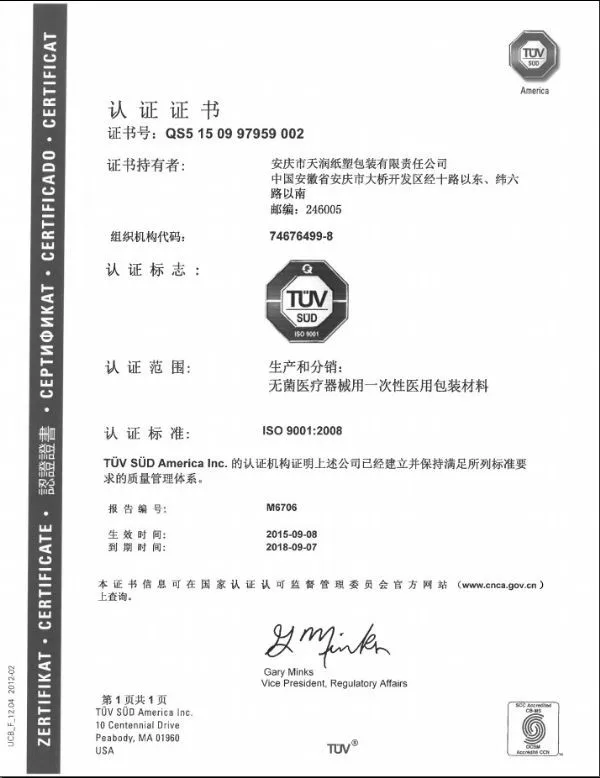 We have established good and long-term stable cooperative relationship with enterprises in over 40 countries and regions in the Middle East , South America , Europe , and Asia since its inception . Our company always adhere to the concept of de - Card ( STEAM , EO , FORM , relopment , " people-oriented , scientific and technological innovation " . The leader of medical packaging field , Anqing Tianrun Sincerely look forward to cooperating with you for long-term , and achieve a win-win situation.