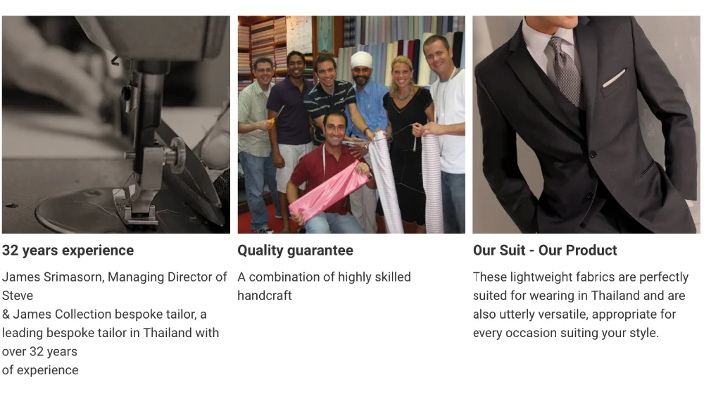 Steve & James owned two custom tailor factories in Bangkok, owning our own factories affirms that our production process is always under our scrutiny and corrected if any false occurs. Our employees at the production line have over 20 years of experience in the art of tailoring.