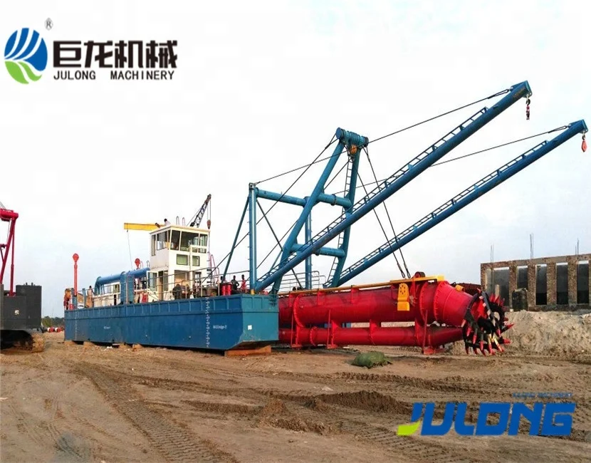 JuLong cutter suction dredger/river sand dredger can apply to all kinds of geologic structures and can be widely used in mineral digging, port dredging and reclamation works. By absorbing advanced technology of Dutch and American related products, this series of dredgers show their characteristics of rational design, all hydraulic control, simple operation, little maintenance and strong power. The capacity of JuLong dredgers ranges from 500 m3/hr to 6000 m3/hr, dredging depth from 1.0 m to 25 m and discharge distance from 500 m to 3000 m, which can satisfy different projects demands.
