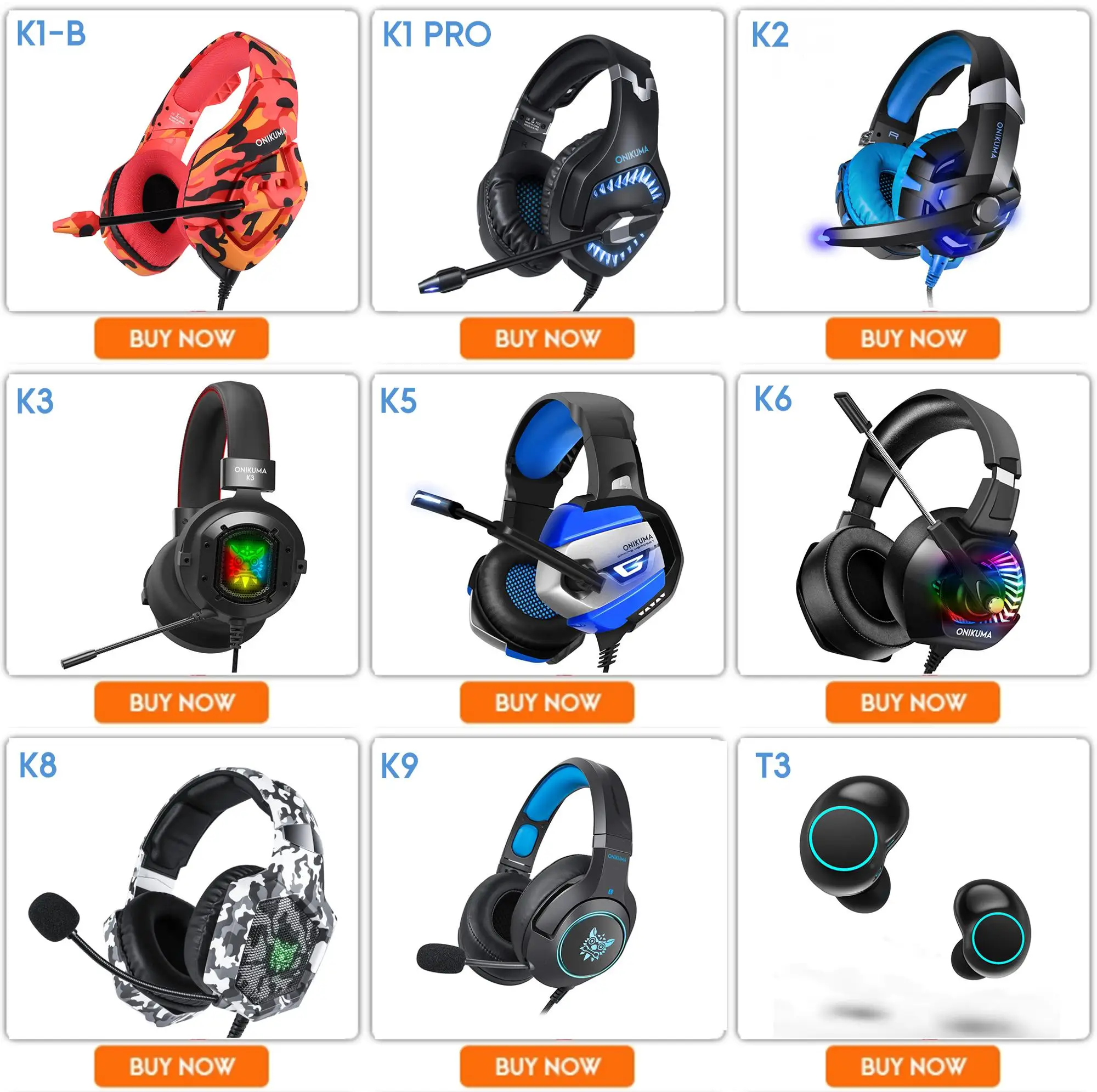 Topsale on Amazon K5 Onikuma stereo Gaming headphone with Headband RGB light for PSP, Laptop, PC, mobile, Headsets for wholesale |