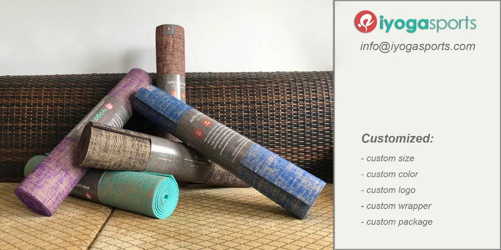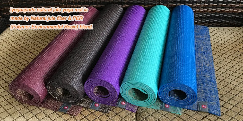 iyogasports natural jute yoga mat is made by Natural jute fiber & PER (Polymer Environmental Resin) blend. Jute fiber Is a natural fiber from a vegetable plant which makes it a biodegradable mat, the soft PER base protects both your bones and joints.