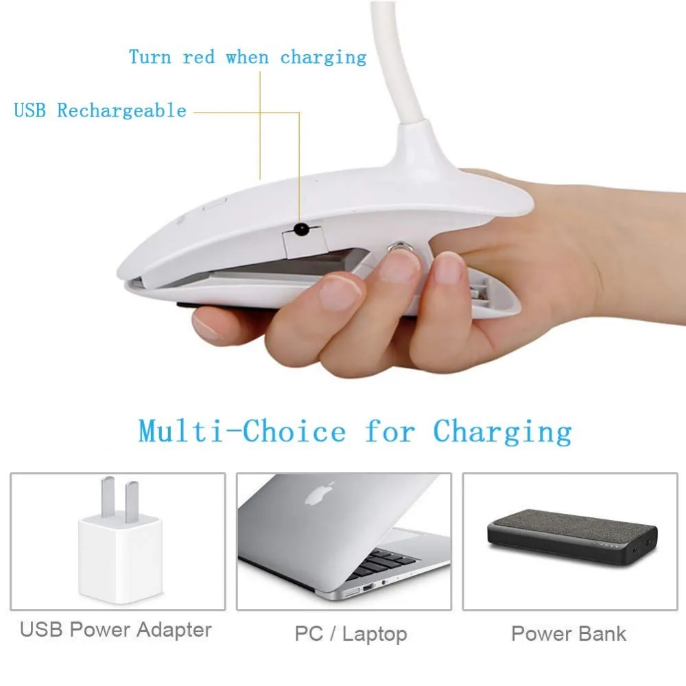 A: 1 * LED clip reading lamp + 1 * USB charging cable (not included adapter) + 1 * User Manual