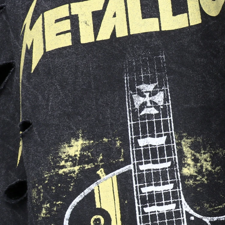 Custom Vintage Faded Tshirt Wash Sublimation Rock and Roll Printed Stone Wash Tshirt