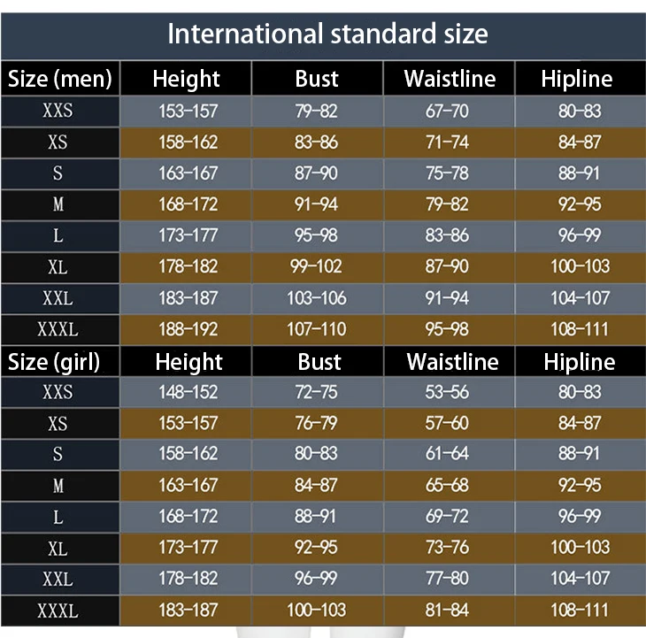 The size chart is as follows