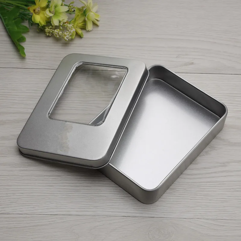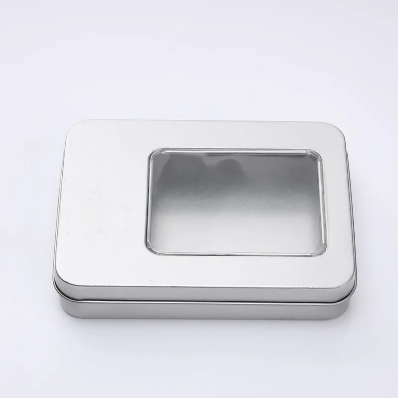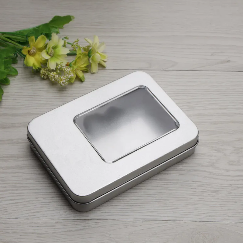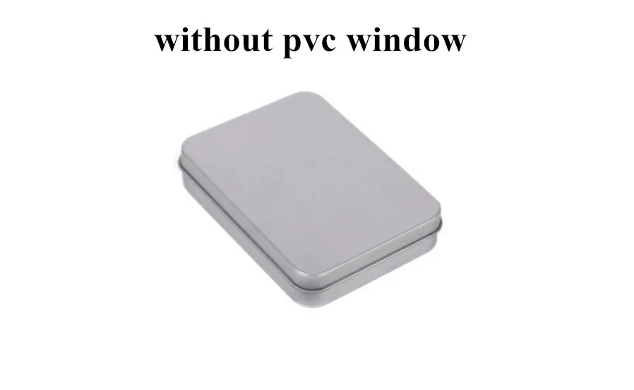 Material: 0.23mm silver tinplate Net Weight: 56g Packing: each in a polybag, 100pcs/carton Printing: no printing. We can print simple logo on the lid. Function: there are 2 item with PVC window and without PVC window. very suitable for gift,usb,candy or other product packing.