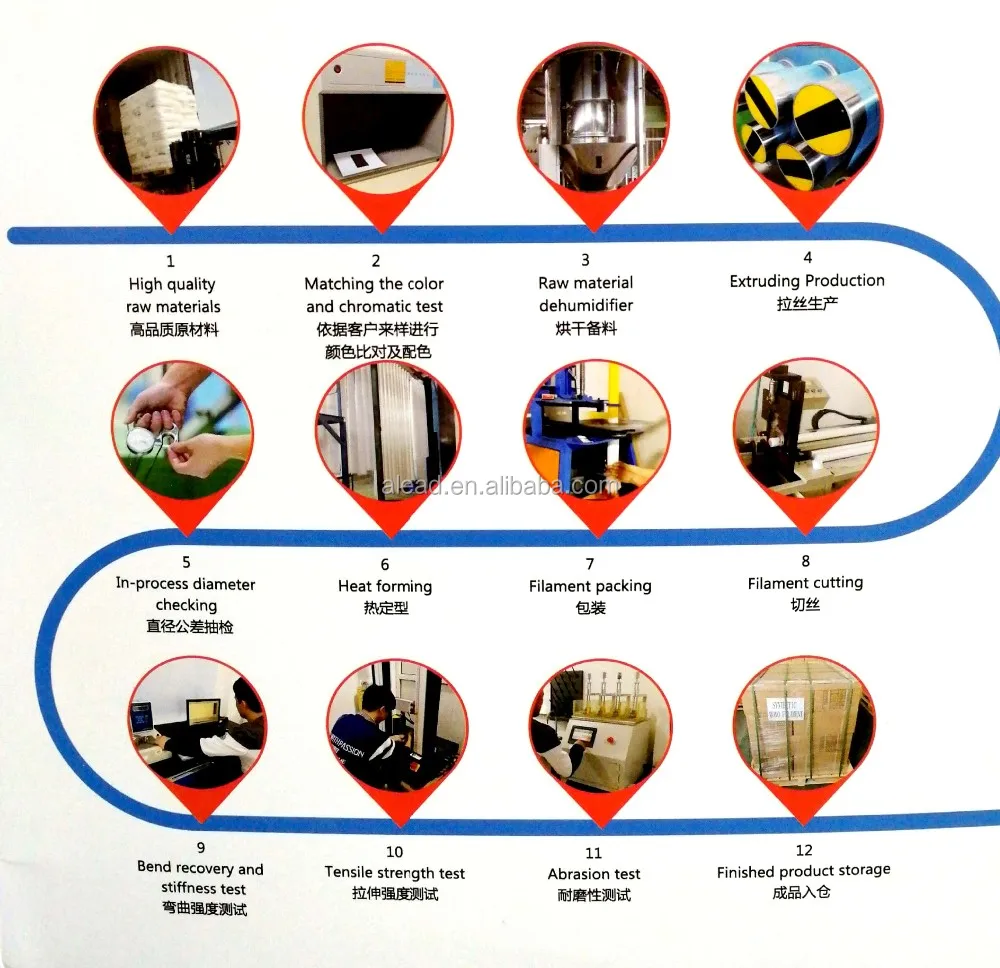 12 years of professional production experience, give you quality assurance. Now Alead has become the leading supplier of the synthetic filaments in the worldwide scope, and has market covered more than 40 countries and regions.